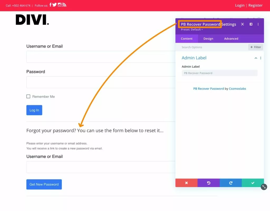 - You can include the password recovery form on the same page as the login form by adding the PB Recover Password module in Divi.