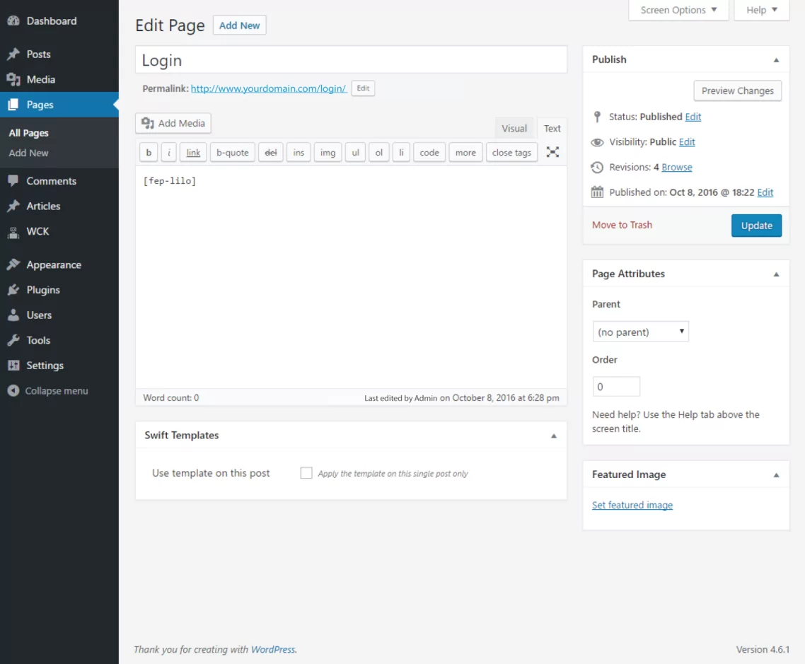 To generate the Login form add inside a page the [fep-lilo] shortcode.